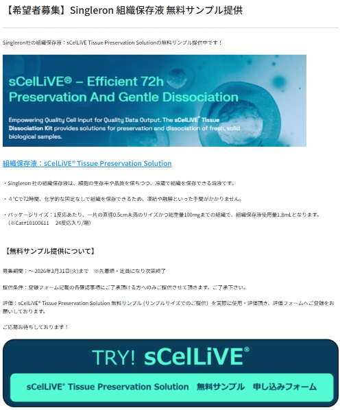 【希望者募集】Singleron 組織保存液 無料サンプル提供 -