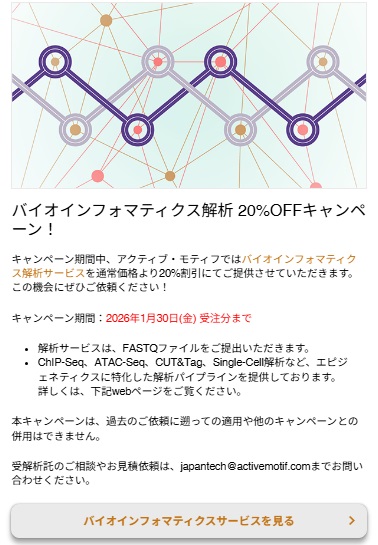 バイオインフォマティクス解析 20%OFFキャンペーン! -