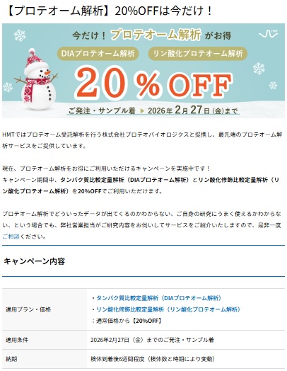 【プロテオーム解析】20%OFFは今だけ! -