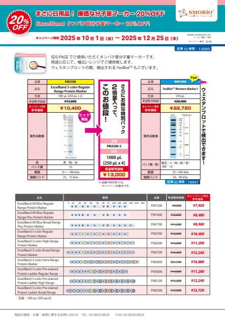 ExcelBand™ DNA 分子量マーカー・タンパク質分子量マーカー 20%OFF! -
