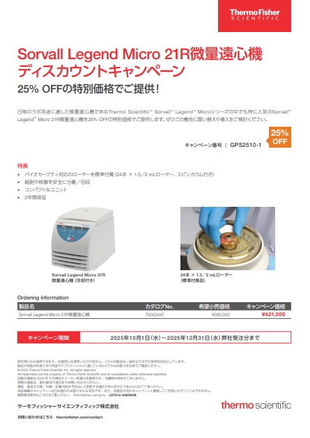 Sorvall Legend Micro 21R微量遠心機ディスカウントキャンペーン -