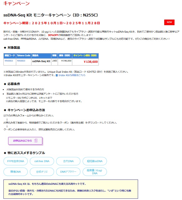 ssDNA-Seq Kit モニターキャンペーン(ID:N255C) -