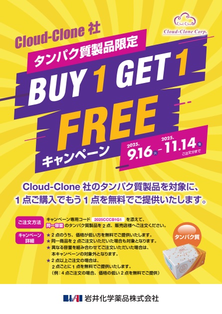 Cloud-Clone社 タンパク質製品 1つ買うと1つ無料キャンペーン!