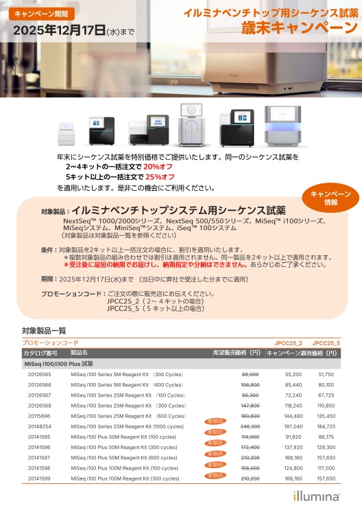 イルミナ ベンチトップ用シーケンス試薬歳末キャンペーン -