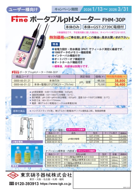 Fine ポータブルpHメーター(FHM-30P)台数限定キャンペーン
