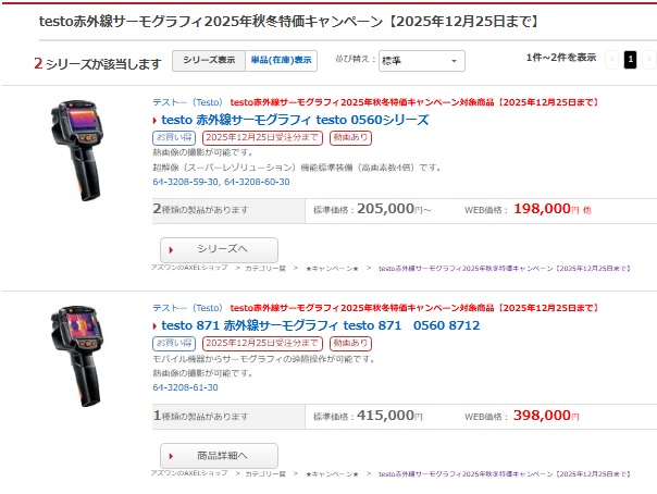 testo赤外線サーモグラフィ2025年秋冬特価キャンペーン -