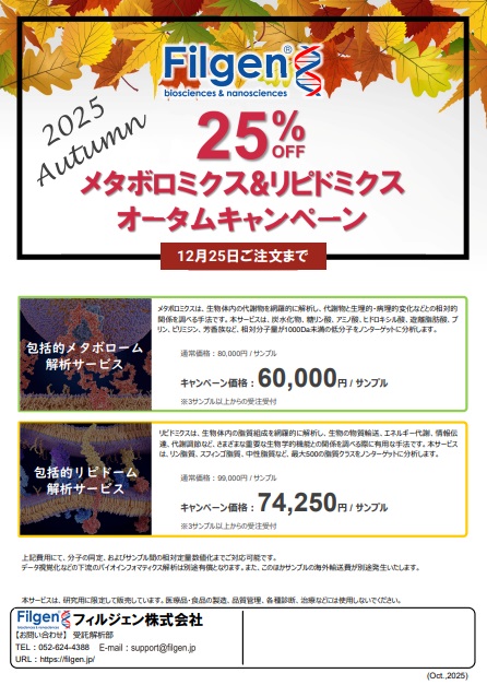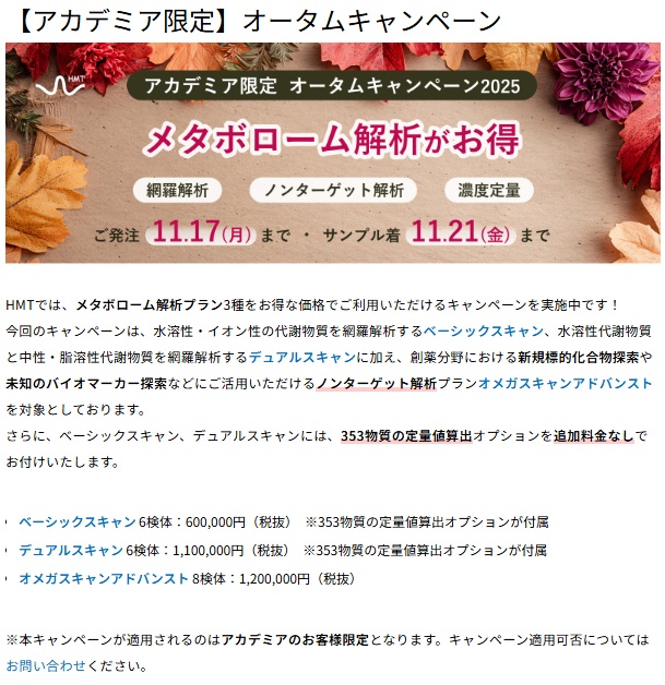 2025 メタボロミクス&リピドミクス オータムキャンペーン! -