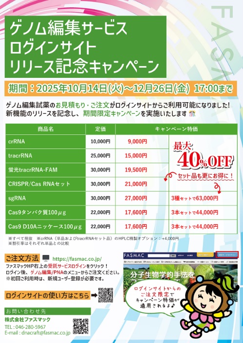 【キャンペーン】ゲノム編集試薬がログインサイトからご依頼可能になりました -